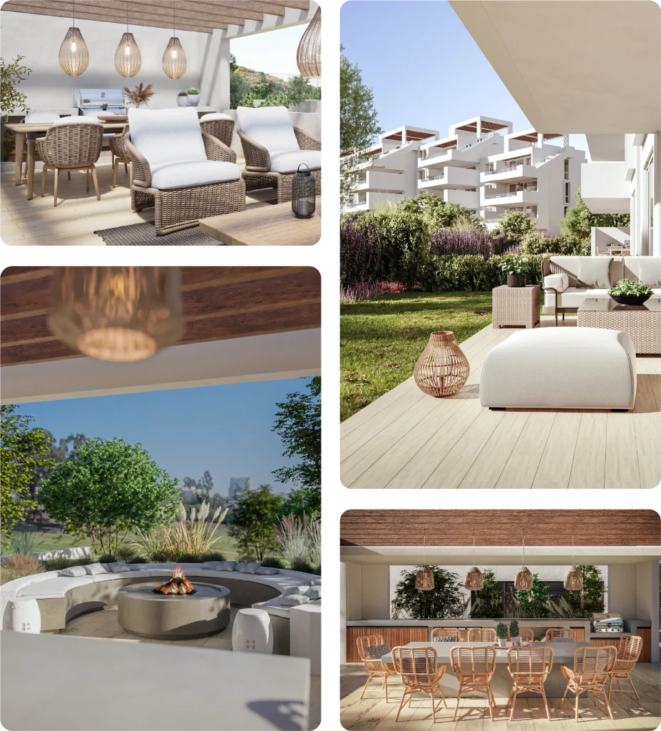 Grao Marbella cuenta con dos edificios de solo 28 departamentos cada uno, que ofrecen unidades con terrazas panorámicas en el último piso y jardines privados en la planta baja. Inspirado en la naturaleza de la costa, el diseño interior del proyecto utiliza texturas y colores que evocan la belleza de la arena, el agua y las rocas.